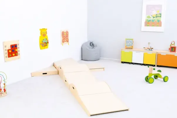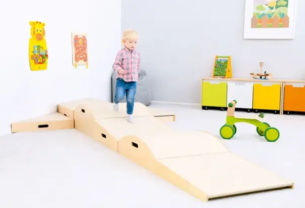 Lekepodie rampe i kryssfiner og støydempende linoleum på toppen.