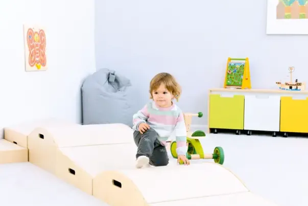 Lekepodie rampe i kryssfiner og støydempende linoleum på toppen.