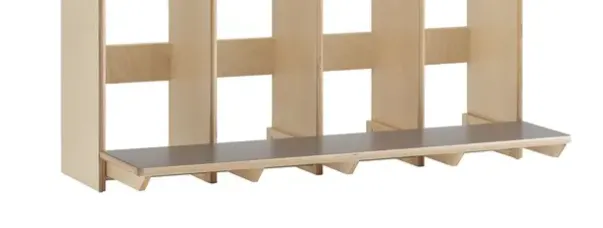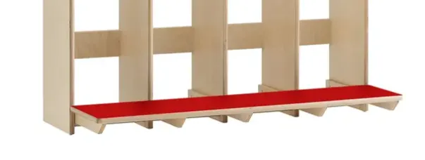 Benk til Arne garderoben. Utført i 18 mm tykk hvitpigmentert bjerk.
