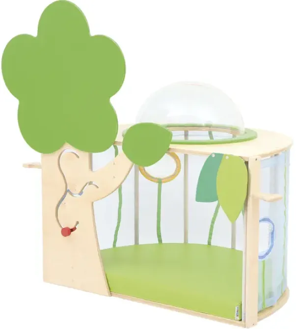 Hulen måler : 108 x 75 x 68 cm. Laget av finer.