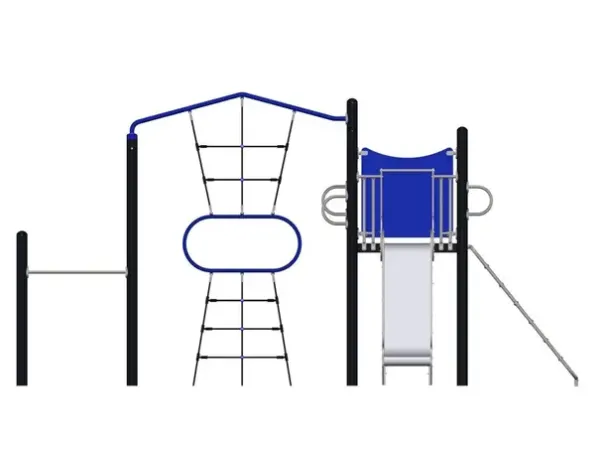Materialer: Galvanisert og pulverlakkert stål, rustfritt stål, HDPE plater, sekstrådet 16 mm tauverk