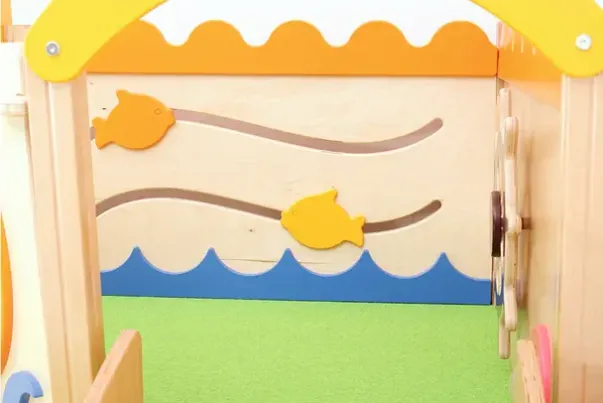Det er fisker som kan beveges, rundt vindu, bevegelig ror, leketunnel og skumputer under plattformen.