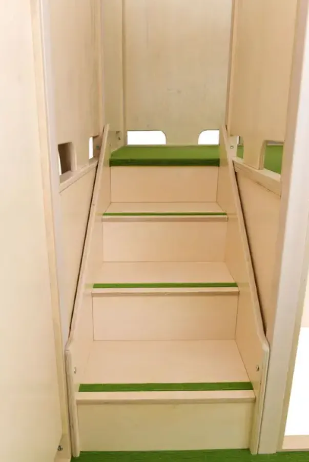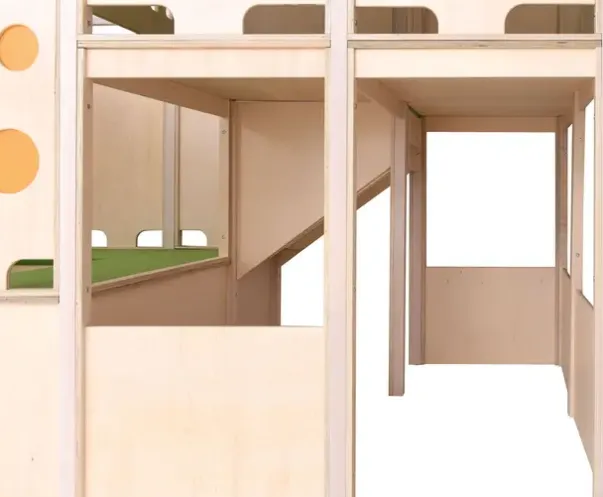 Materiale: Hvitpigmentert kryssfiner, Tretford teppe.