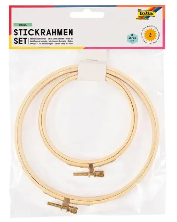 Innehold: 2 stk broderiringer av tre. Str Ø10 cm og Ø15 cm
