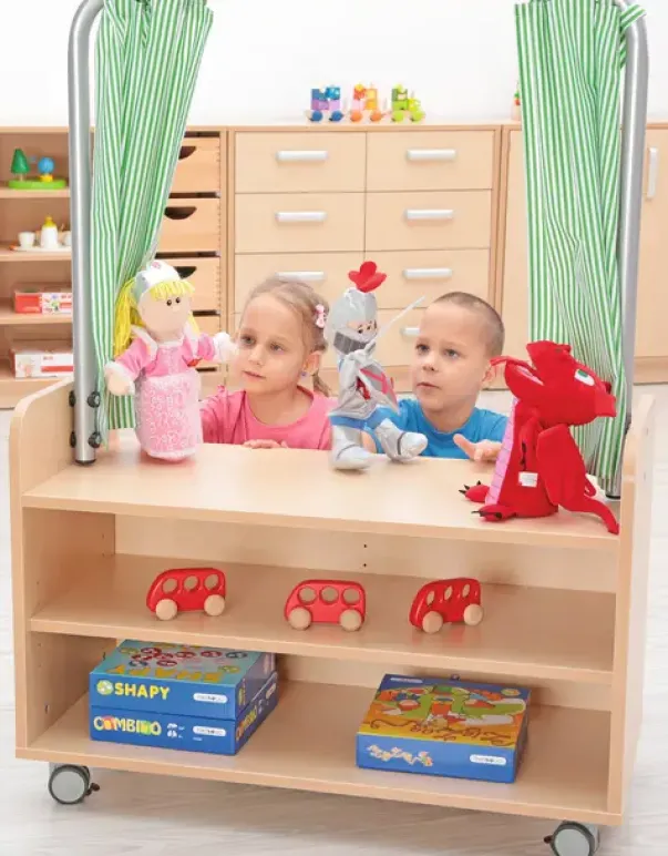 Dukketeater som enkelt festes til våre Bulle reoler.