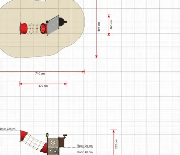 Sikkerhetsareal: L710 x H494, 35,1 m²