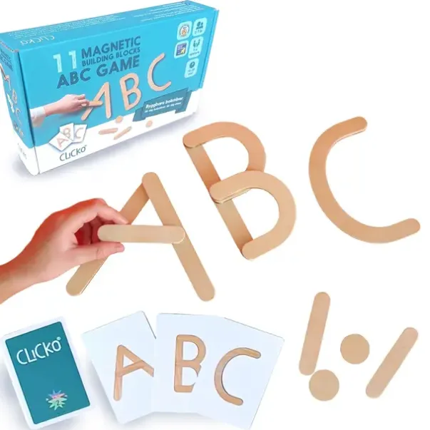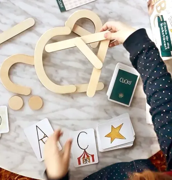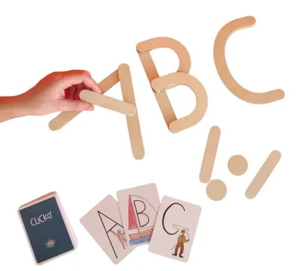 Trebiter som kan bygges sammen til bokstaver. Kortstokk med monstre og stjerner følger med slik at barna kan spille bokstavspillet. Trekk et kort og bygg bokstaven på kortet ved hjelp av tredeler. For hver bokstav får man en stjerne! Men pass på monstrene som elsker stjerner… Først til 5 stjerner vinner! Les mer>>