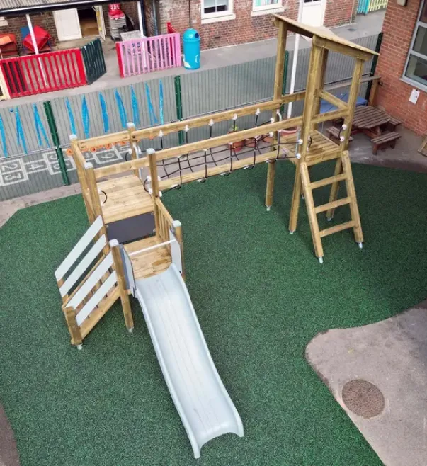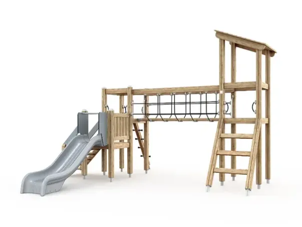 Funksjoner: Aktivitetstårn, balansebom, klatrestige, sklie