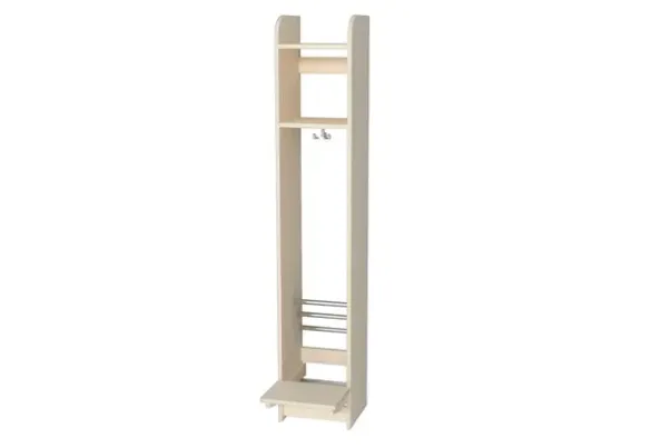Dal vegghengt garderobe i 15 mm tykk hvitpigmentert kryssfiner av bjerk.