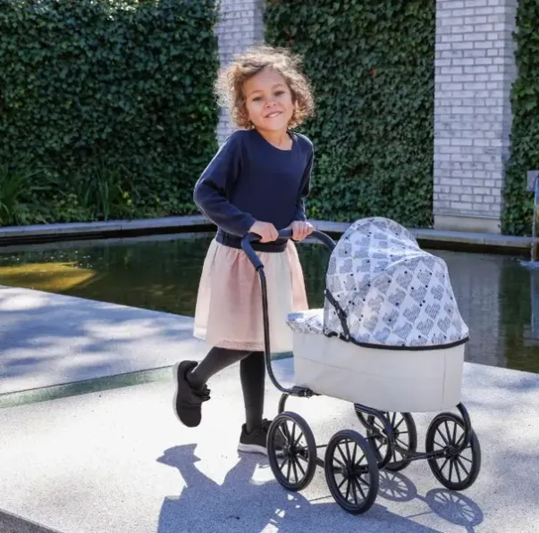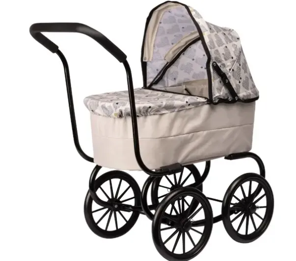 Ta med dukken på en leken utflukt! Denne klassiske dukkevognen har en dyp bassinet og myk madrass slik at dukken kan hvile skikkelig på lange turer. Stilen på dukkevognen har hentet mye inspirasjon fra fortiden og har sitt helt eget mønsterdesign. I denne stabile dukkevognen ligger dukken trygt og komfortabelt på alle barnets eventyr!