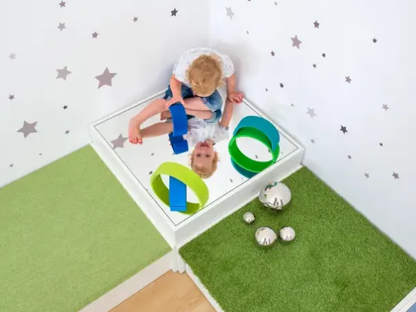 Med Anton podiesett oppmuntres alle sanser. Barnehagebarn er spesielt fascinert av plattformen med speil. De vil fort bli begeistret for å se sin egen refleksjon samt speiling av leker. Sokkelen med kunstgress har et ekte gressutseende og det oppleves som at du tar naturen inn i lekerommet. Rampen og kvartsirkelen er utstyrt med lettstelt linoleum som tørkes enkelt av og behandles med vanlige desinfeksjonsmidler.