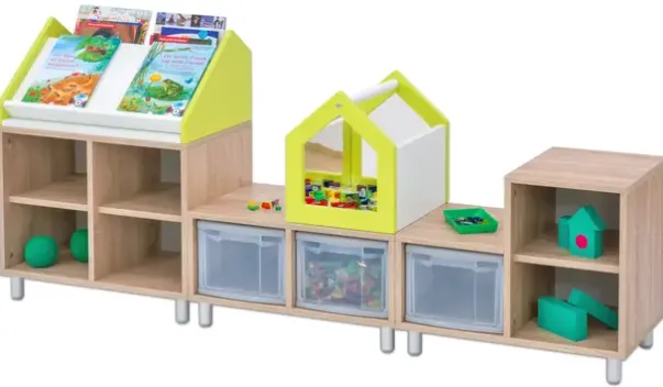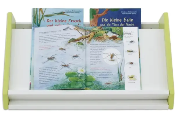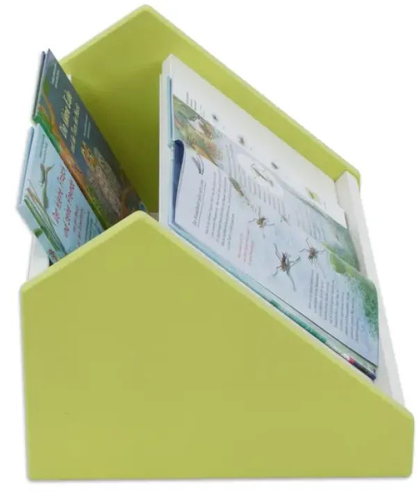 Educasa bokkasse har både lagringsplass og bokbrett der bøkene kan vises sin hele forside. Det kan fylles opp med bøker i kassen bak der barna enkelt kan finne frem til en spennende bok. Denne passer til Educasa reolsystem 2 rom, se varenr B4174X.