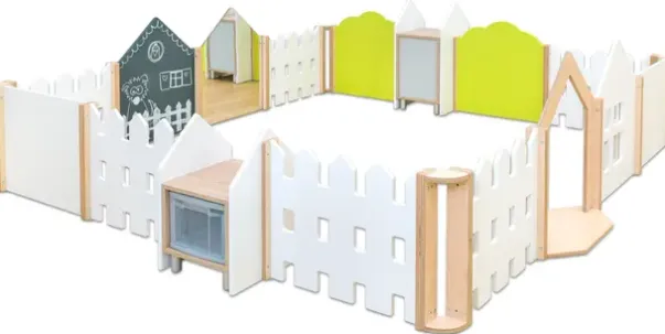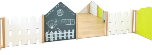 Educasa lekepark består av 31 elementer som stimulerer fantasien, lekegleden og oppfordrer til utforskning. Elementer som tavle, speil og vindu er noe av det barna kan utforske i lekeparken. De integrerte hyllene med praktiske skuffer gir ekstra lagringsplass for leker, penner, kritt og andre gjenstander.