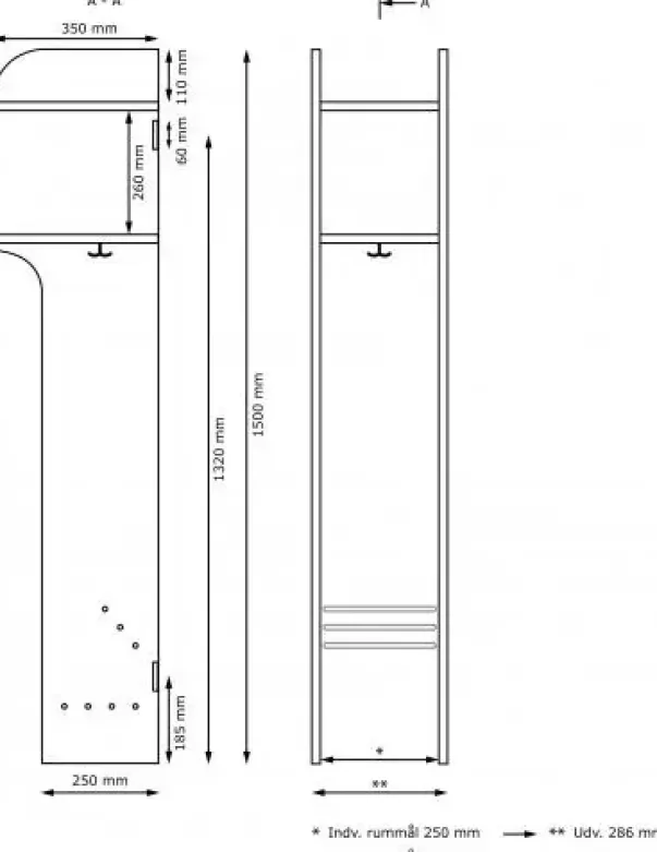Garderobe med ekstra god plass. Utført i 18 mm tykk FSC sertifisert hvitpigmentert kryssfiner. Elevgarderoben leveres med en rombredde på 30 cm som standard, men kan også leveres på andre mål på forespørsel.