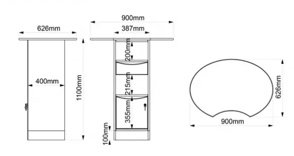 Mål: B38,7 x D40 x H110 cm inkl sokkel. Platestørrelse: 90 x 62,6 cm