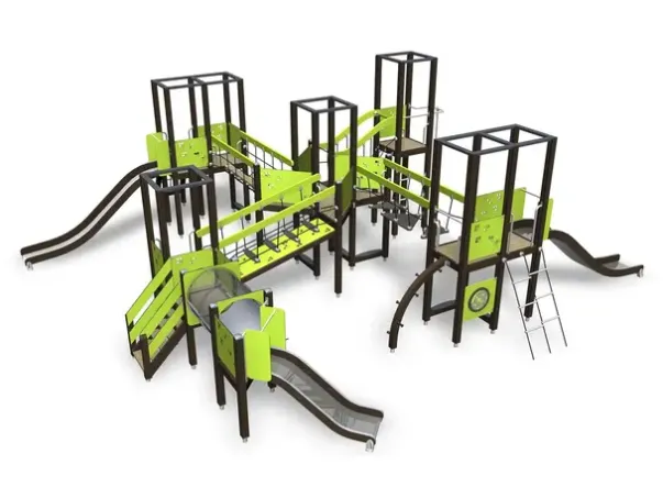 beiset med UV-bestandig beis. Metalldelene er meget slitesterke og har enutsøkt finish. De er behandlet med Lappcoat, en overflatebehandling spesieltlaget for å beskytte metalldeler på lekeplassutstyr. Tauet er stålforsterket.Stolpene er ikke i kontakt med bakken, men er forankret med stål.