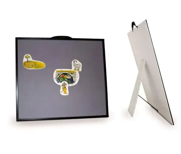 Tavlen er solid og har høy kvalitet, 3mm MDF, Samtidig er den lett å flytte. Kan henges opp etter et bånd eller stå på gulv eller bord ved hjelp av en klaff bak.