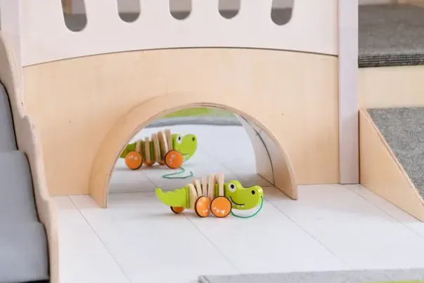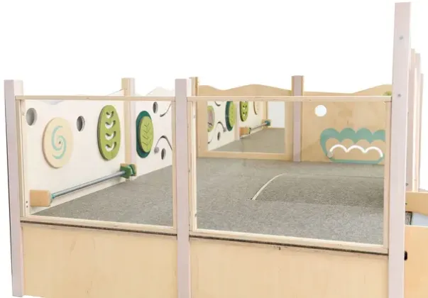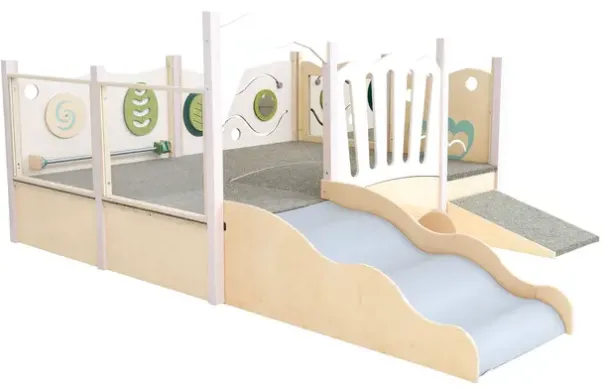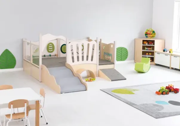 Flora lekehjørne mini, en plattform for de minste. Lekehjørnet blir raskt en barnemagnet da den inviter nyskjerrigheten til nye oppdagelser. Barna vil underveis finne ulike sansevegger, motorikkvegger, sklie og nivåforskjeller. Plattformen har godt med utkikksteder der barna kan observere og oppdage rommet fra høyden. Dette gir også godt innsyn fra utsiden. Plattformen er dekket av gulvteppe for sklisikkerhet.