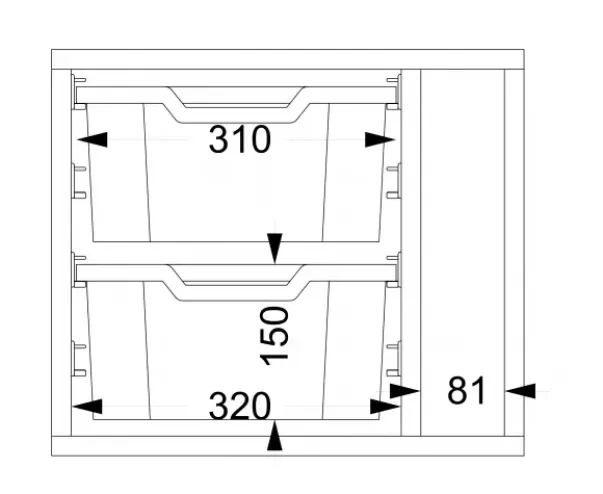 Freja 2 medium plastskuffer. Skillevegg