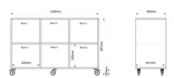 Hvis du ønsker tilbehør som f.eks. skuffer, skillevegger eller hyller – vennligst oppgi romnr. ved bestilling.