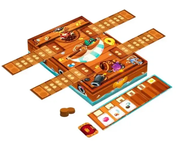 Dere er unge og rampete pirater som prøver å stjele skatter fra kaptein Giraffes skattekiste mens du anklager de andre piratene. Men vær forsiktig, for hvis du blir tatt, må du gå på planken! For hver skatt du klarer å stjele, vil motstanderen din ende opp med en kasse på enden av deres planke…som kanskje gjør at de velter i vannet… Den første elefant som faller i vannet, taper spillet! For hver tur trekker du så mange kort du vil fra kapteinens kiste. Jo mer du klarer å ta, jo flere kasser vil motstanderne måtte plassere på plankene sine. Men pass på, hvis du trekker det samme kortet to ganger, må elefanten din gå frem på planken.