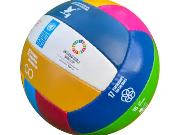 Materiale: økologisk bomullsmateriale og PU, innvendig blære av latex av gummitrær. Vannbaserte trykkfarger. Produsert ihht ISO 14001 og ISO 9001.
