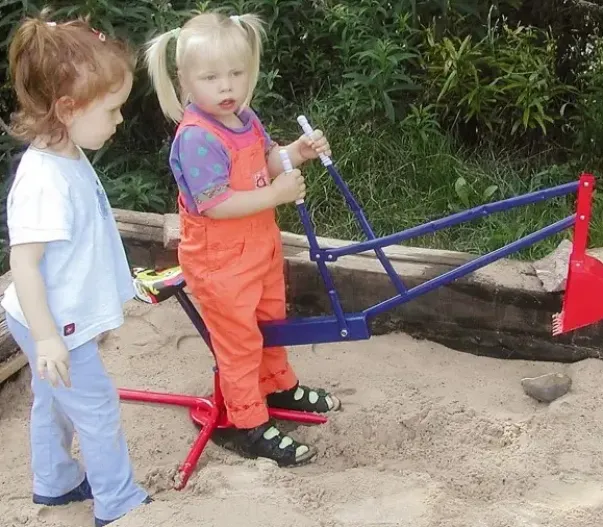 En gravemaskin er et must i sandkassa. Denne tøffe gravmaskinen har en kraftig lakkert stålramme og er svingbar i 360grader. Stålgrabb med tenner.