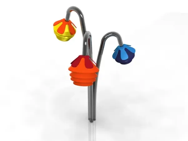 Visuelt stimulerende og fargerik, hver «blomst» er laget av fire klokker med avtagende størrelse og stigende tonehøyde. Hver «bjelle» gir en ren tone med en lang etterklang. D-moll= oransje klokker, E-moll= gule klokker, A Minor= Indigoblå