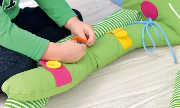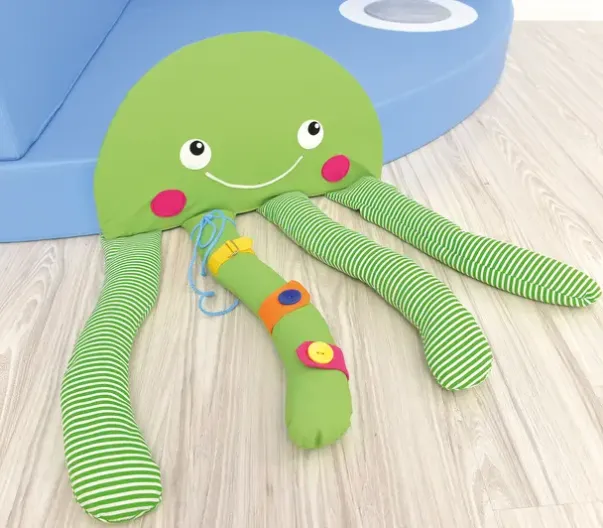 Sensorisk skum lekemadrass tilpasset for brruk i hjørne. Madrassen leveres inkludert ryggputer. Madrassen har et felt med myk overflate, samt ulikt fyll til å ta og følge på i blekksprutens armer.