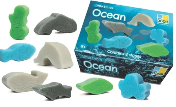 Settet inneholder åtte steiner: blåhval, klovnfisk, delfin, blekksprut, spekkhogger, sjøhest, hai og skilpadde.