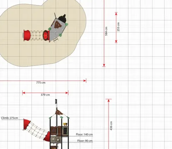 Sikkerhetsareal: L775 x H584, 45,26 m²