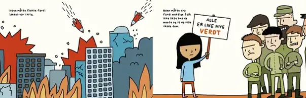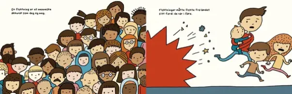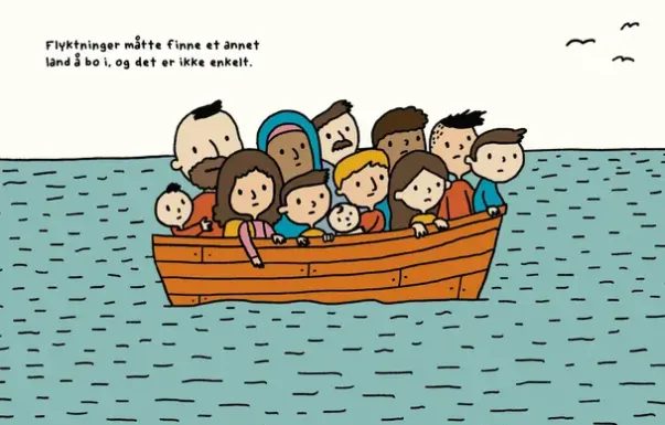 Hvem er flyktninger? Hvorfor må de forlate landet sitt? Og hvorfor er de noen ganger ikke velkomne i sitt nye land? Boka er et perfekt verktøy til å introdusere et viktig og aktuelt tema for barn.