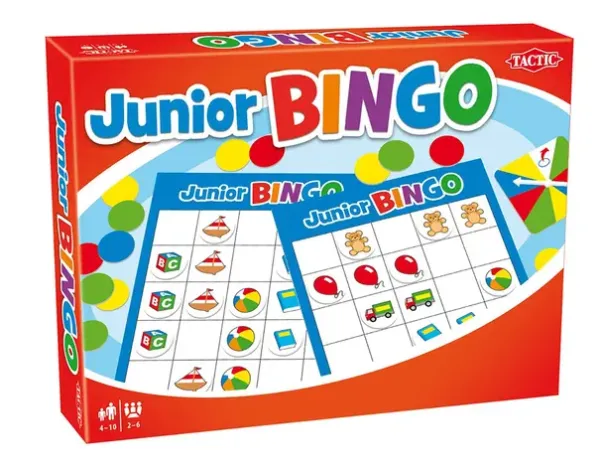 Vår Junior Bingo er en umiddelbar hit! De enkle reglene og fargerike bingo-brett gjør spillet enkelt å lære og artig å spille. Snurr spinneren og prøv å få fem bilder på rad på bingobrettet! Hvem vil bli den første til å få BINGO? 2 – 6 spillere. Fra 4 år.