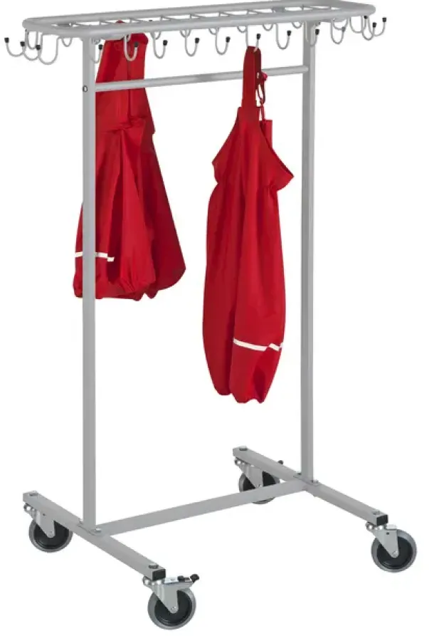 30 stk. faste kroker. 2 hjul kan låses fast.