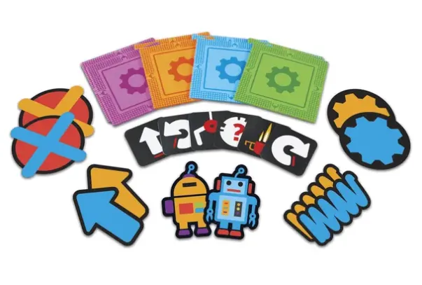 Settet inneholder 20 skummatter (23,5 x 23,5 cm), kort av robot x 2, tannhjul x 2, fjær x 2, pil x 2 og kryss x 2.