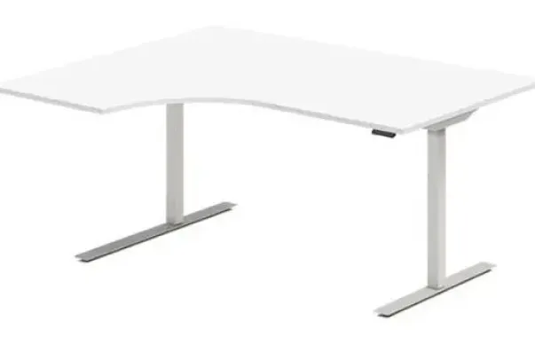Heve-senk kontorpult i 25 mm tykk laminert spon. Leveres med pulverlakkert el-motorisert understell.