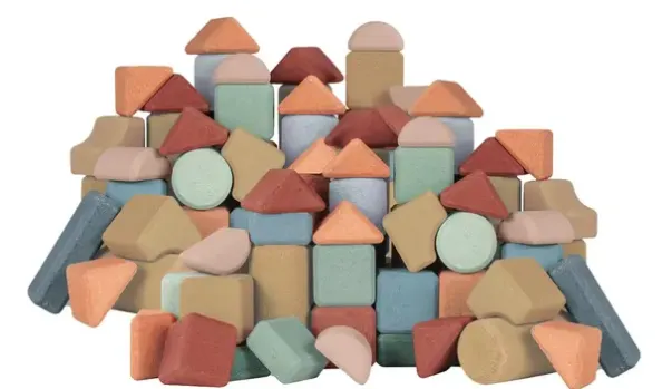 200 byggeklosser laget av bærekraftig dyrket kork i 6 forskjellige former.