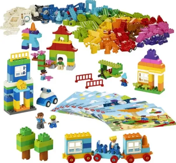 Barna jobber i grupper på 2–10, og bruker samlingen av 480 fargerike LEGO® DUPLO® klosser, figurer, hjulbaser, vinduer, dører og en byggeplate for å bygge hjemmet sitt, en restaurant, bussholdeplass, sykehus og brannstasjon. De vil også kunne bruke fantasien til å bygge fantasidyr og finne på morsomme historier helt selv.