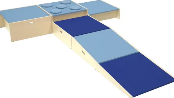 Lekepodiesett utført i lakkert kryssfiner med Tretford teppe på topplate. Tretfor teppet består av en blanding av ull fra sau og geit og er et godt miljvennlig valg. Settet består av ulike deler som kan settes samme ut i fra eget ønske og plass i rommet.