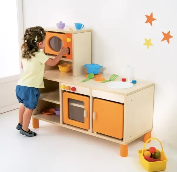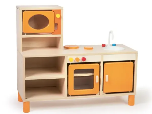Mikrobølgeovn, stekeovn, kokeplater, vask og skap.