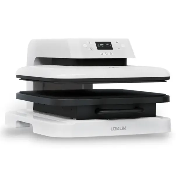 Auto Heat Press har en én-knapps start og auto-løft innebygd for å gjøre den så enkel som mulig å bruke. Den legger jevnt trykk på alle materialene dine, med en tykkelse på opptil 2,5 cm.