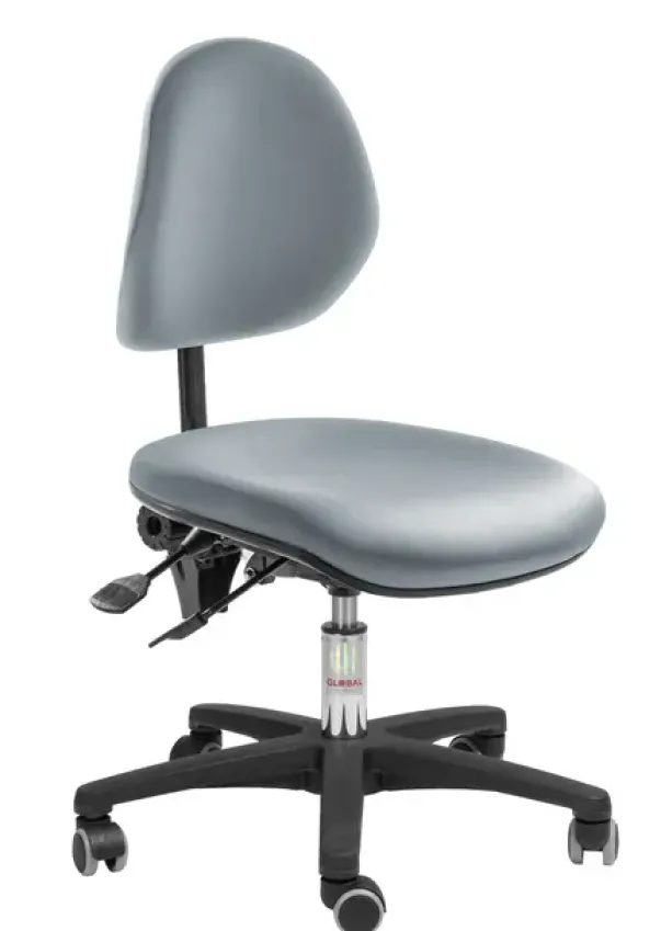 Lærerstol med praktisk og komfortabelt sete og ryggstøtte, polstret med kaldskum og dekket med kunstskinn, som er veldig lett å rengjøre.