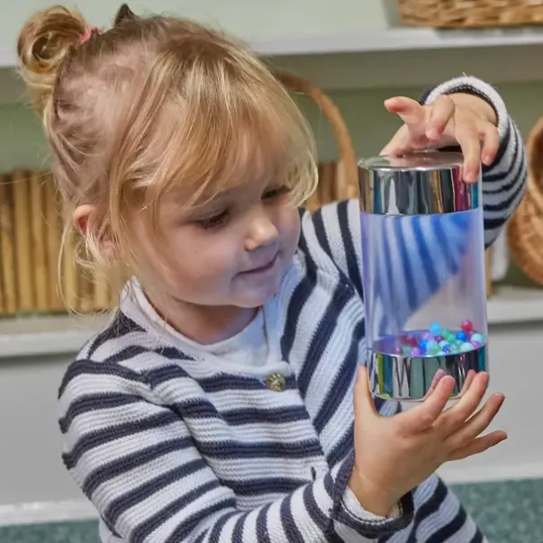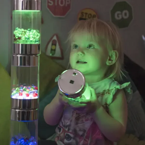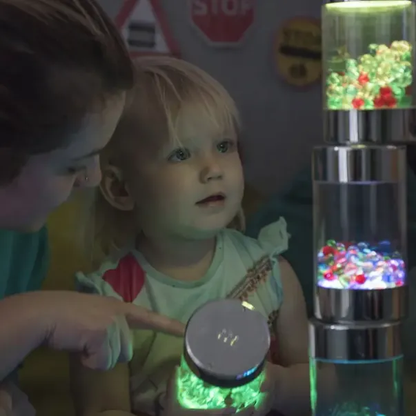 Ferdighet ogfunksjon: Stable, rull eller snu. Den skiftende belysningen og bevegelige perlene gir en spennende visuell stimulans som hjelper barn med å danne viktige forbindelser og forstå hvordan ting fungerer. Med to forskjellige lysinnstillinger kan barn eksperimentere med årsak og virkning ved å snu og flytte de opplyste rullene for å se fargene endre seg.