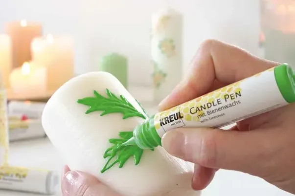 Etter en tørketid på ca. 8 timer er maleriet stivnet på stearinlyset