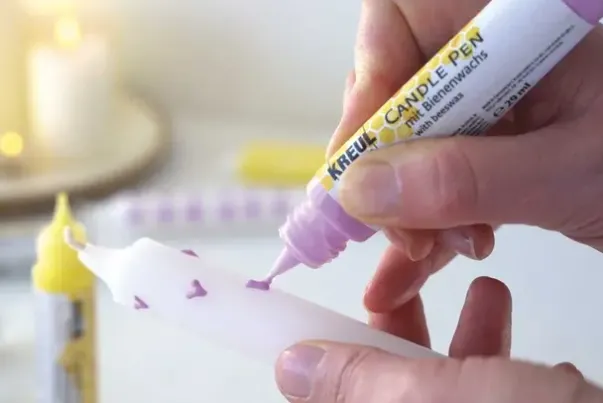 Etter en tørketid på ca. 8 timer er maleriet stivnet på stearinlyset