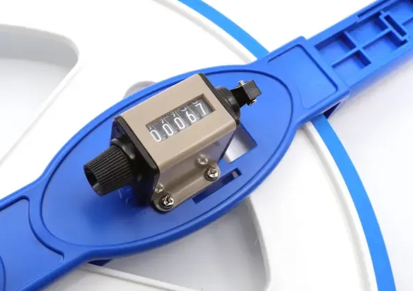 Til oppmåling av større avstander. «Klikker» for hver meter, pluss et telleverk som teller hver meter.