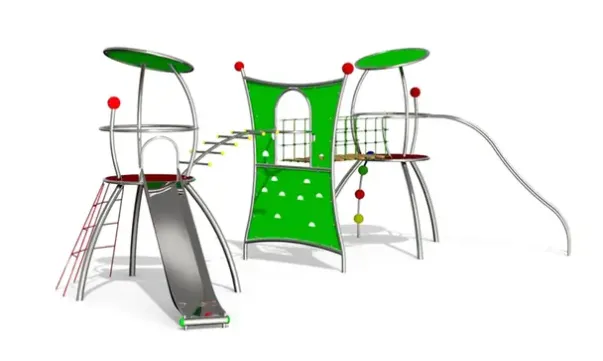 Klatrestativ Mars. Materiale i rustfritt stål og gummigranulat.