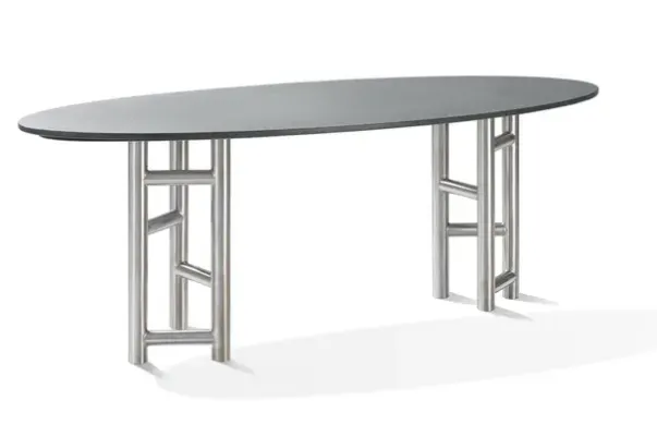 Laget i rustfritt stål og granitt. H:78cm, L: 215cm, B 85cm
