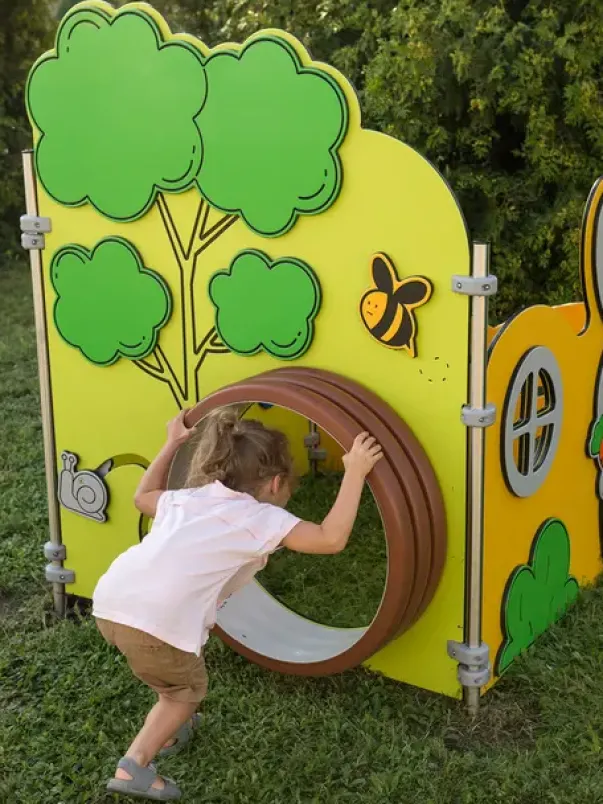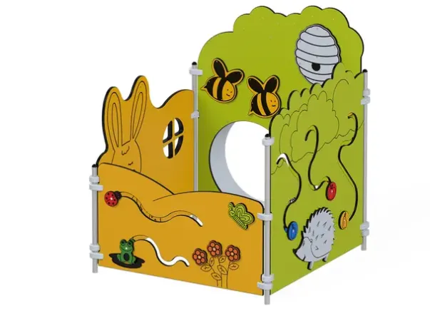 Materiale: Strukturelle elementer av rustfritt stål (Ø33,7 mm), paneler av HDPE (15 mm), PP, beslag og koblinger av rustfritt stål