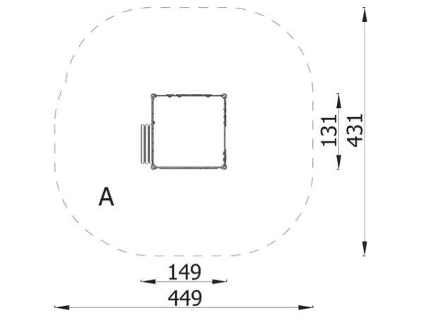 Sikkerhetsareal: L449 x B431 cm, 17 m²